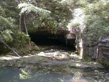 The cave system was discovered as early as the 19th century. Up until 1913, the entrance used was the exodus of a spring which drained into the White River. However, a dam completed in 1913 on the White River closed off this entrance. In 1940, a second entrance was created after a severe storm passed through the area. A small pond on the farm of George Colglazier vanished overnight, becoming a sinkhole, and the present day entrance into the cave system. The undeveloped cave soon had Colgazier's children wanting to learn more about the newest adventure spot on the family's 100-acre (0.40 km2) farm. Although his daughters Uzahne and Janet were not frequent visitors to the cave; his sons, Norman, James, Lee and Daniel were fascinated by the cave. Soon word of the largest opening of Bluespring Caverns spread and the Colglazier family welcomed visitors from around the world as others descended on the small farm to explore the caverns. George Colglazier and his wife, Eva, lived on their family farm and welcomed visitors to the caverns until the death of George Colglazier in the early 1980s. Neither Colglazier nor his wife ever profited from Bluespring Caverns. They made their living as hard-working dairy farmers. They freely allowed cave explorers on their property and asked them to obey one rule, "not to destroy or remove from the caverns". |