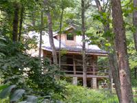 They make wine in a log cabin style building. The lower level is their production facility and the upper level is their tasting room with a 14 foot bar and three 2-seater tables, and the front porch has four log style rocking chairs.